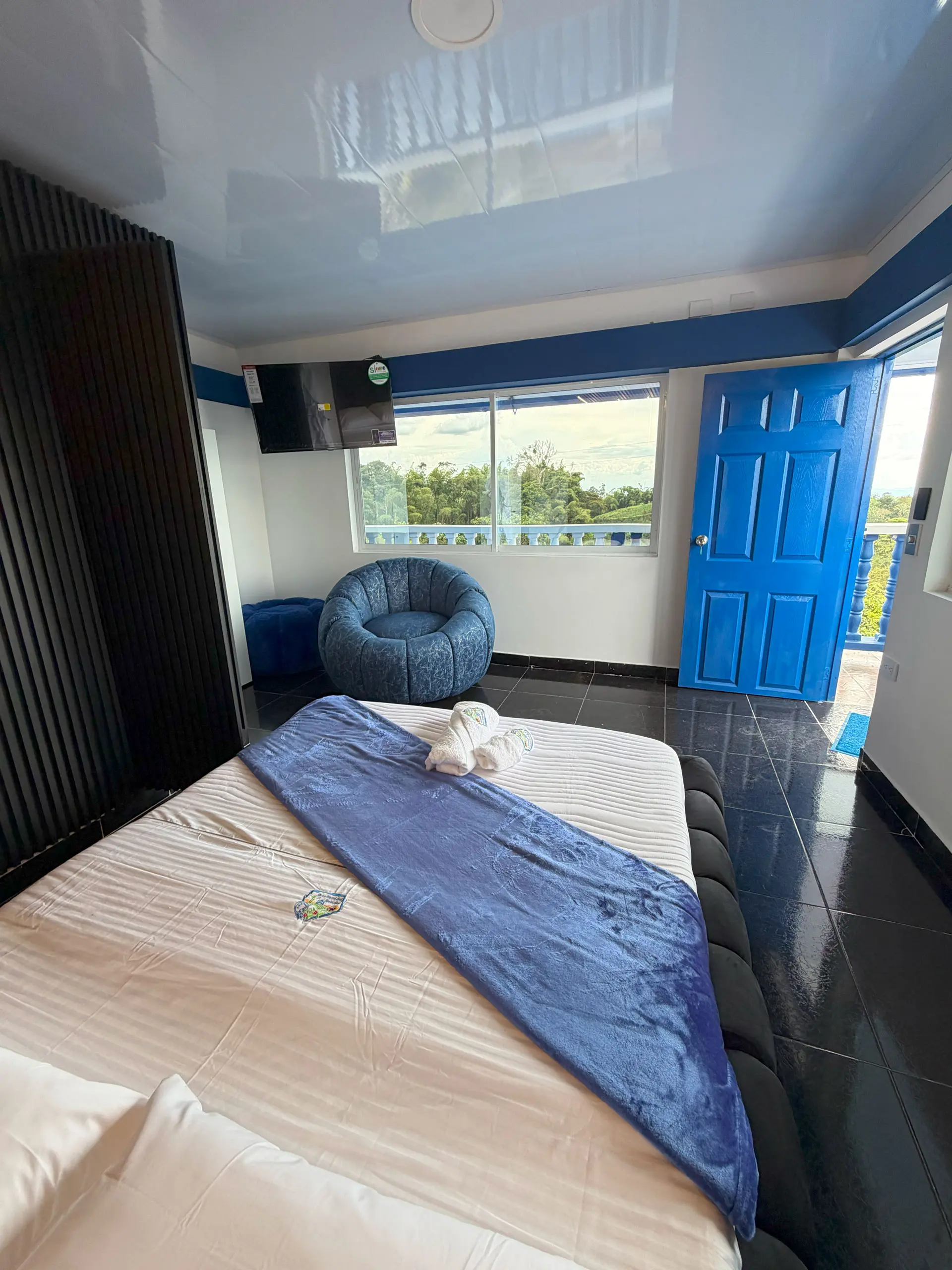 Ideal para quienes buscan descanso total, esta habitación conecta perfectamente con el entorno natural del Quindío.